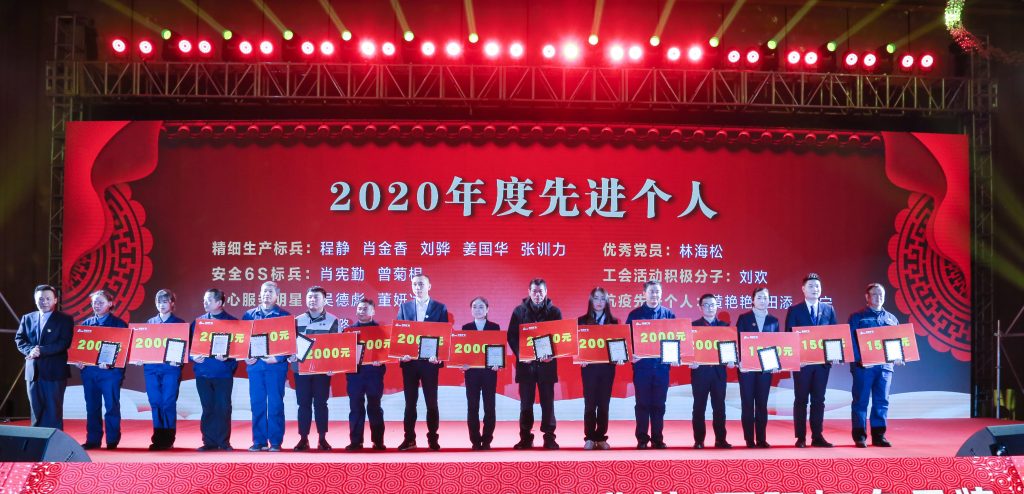 ? ? 慶典上,為答謝長(zhǎng)期以來關(guān)心、支持南昌礦機(jī)發(fā)展的廣大合作伙伴與為企業(yè)作出貢獻(xiàn)的優(yōu)秀員工,特頒發(fā)了“卓越合作伙伴獎(jiǎng)”、“特殊貢獻(xiàn)退休員工獎(jiǎng)”、“卓越貢獻(xiàn)員工獎(jiǎng)”、2020年度先進(jìn)團(tuán)隊(duì)、2020年度先進(jìn)個(gè)人等獎(jiǎng)項(xiàng)。