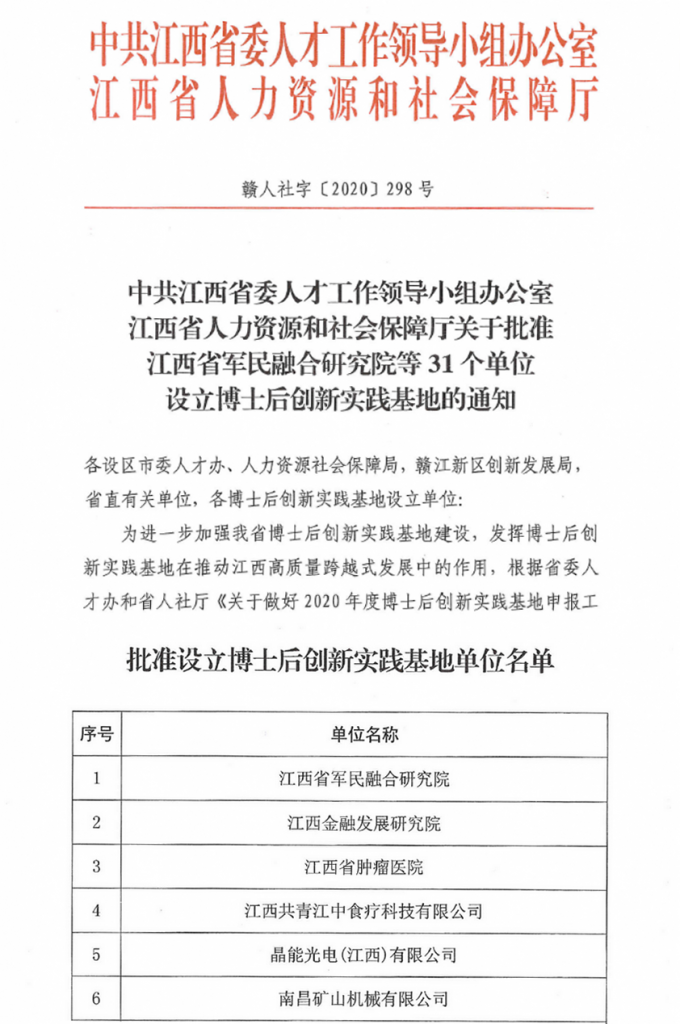 ? ? 本次設(shè)立新一批博士后創(chuàng)新實踐基地,是經(jīng)中共江西省委人才工作領(lǐng)導(dǎo)小組辦公室及江西省人力資源和社會保障廳研究決定,旨在進(jìn)一步加強(qiáng)江西省博士后創(chuàng)新實踐基地建設(shè),發(fā)揮博士后創(chuàng)新實踐基地在推動江西高質(zhì)量跨越式發(fā)展中的作用。此次南昌礦機(jī)獲批為博士后創(chuàng)新實踐基地,再次充分體現(xiàn)了國家各級政府對南昌礦機(jī)的綜合實力,尤其是技術(shù)創(chuàng)新能力、科研能力及人才培養(yǎng)能力的充分肯定。