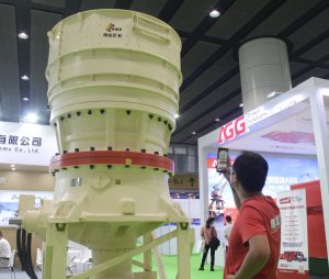 作為一年一度的國(guó)際性砂石盛會(huì),此次展會(huì)集中展示了業(yè)內(nèi)最前沿、最先進(jìn)的新產(chǎn)品、新技術(shù)、新工藝。南昌礦機(jī)本次參展的設(shè)備是一臺(tái)CC500S大型單缸液壓圓錐破碎機(jī),該設(shè)備可廣泛適用于金屬礦山和骨料生產(chǎn)線二段破碎,最大產(chǎn)量可達(dá)1250噸/小時(shí),排料口可在32-83mm范圍內(nèi)調(diào)整,最大給料粒度達(dá)560mm,具有產(chǎn)量大、破碎比高的特點(diǎn)。